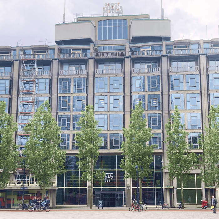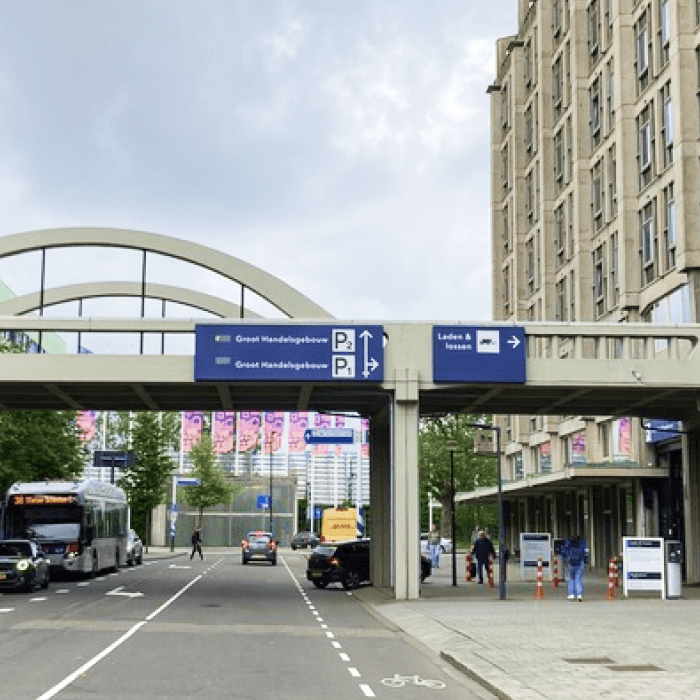 De Weena ingang is vooral praktisch als je met de fiets bent of buiten de parkeergarage geparkeerd staat. De ingang heeft aan de buitenkant een bel die we, pak vervolgens de lift naar verdieping 7. Daar kun je de trap aflopen en gelijk naar links, vervolgens kom je bij Unit 062.