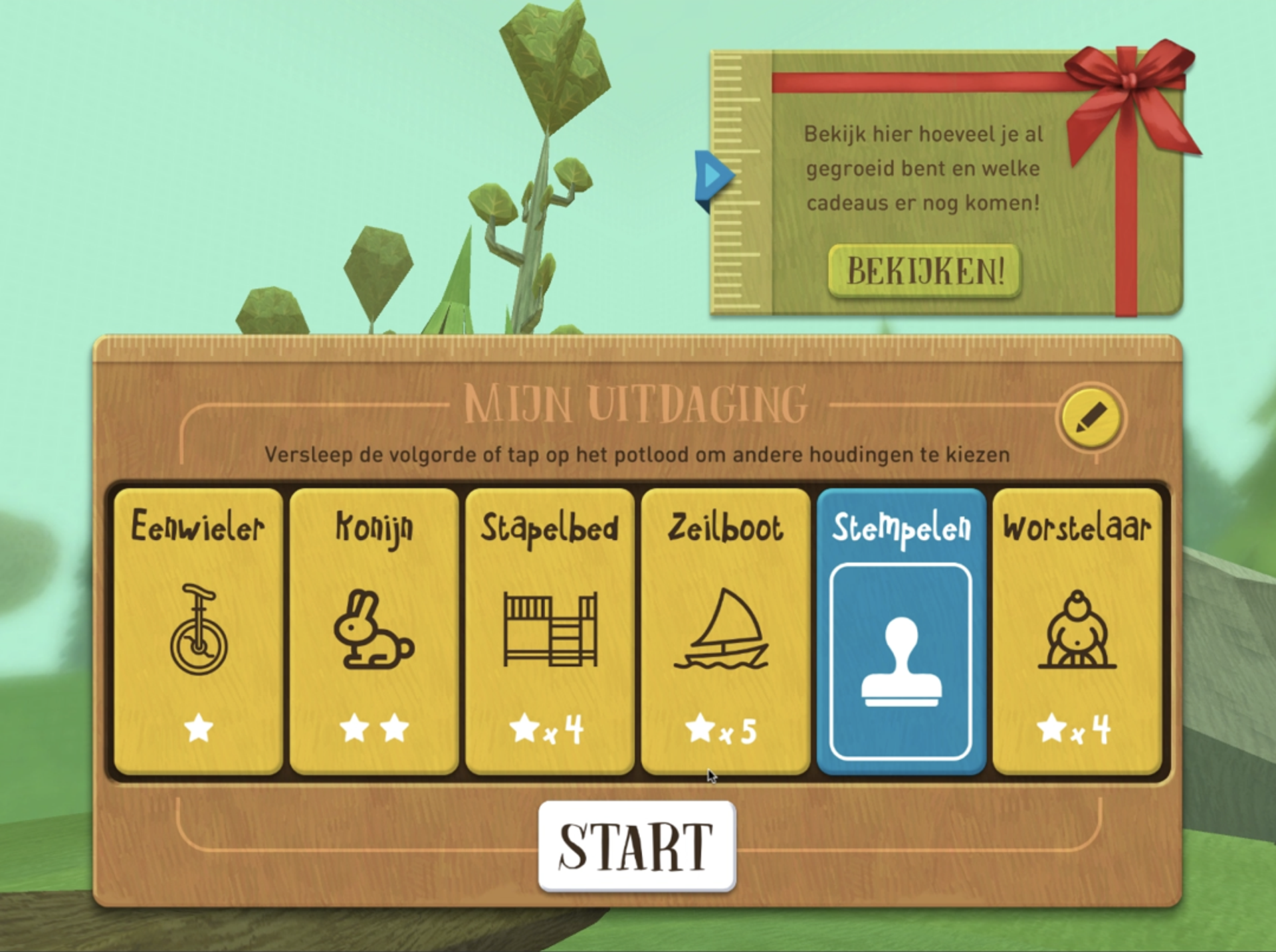 Naast de feedback is ook de opzet van de oefeningen heel gevarieerd. Aan het einde van een serie mag je sterren geven om de oefeningen te beoordelen. De game weet daardoor welke je wel en niet wilt spelen in de volgende sessie. Aan het einde van een serie oefeningen (1 week) ontvang je een nieuwe uitdaging. Deze kun je toevoegen aan je favorieten.